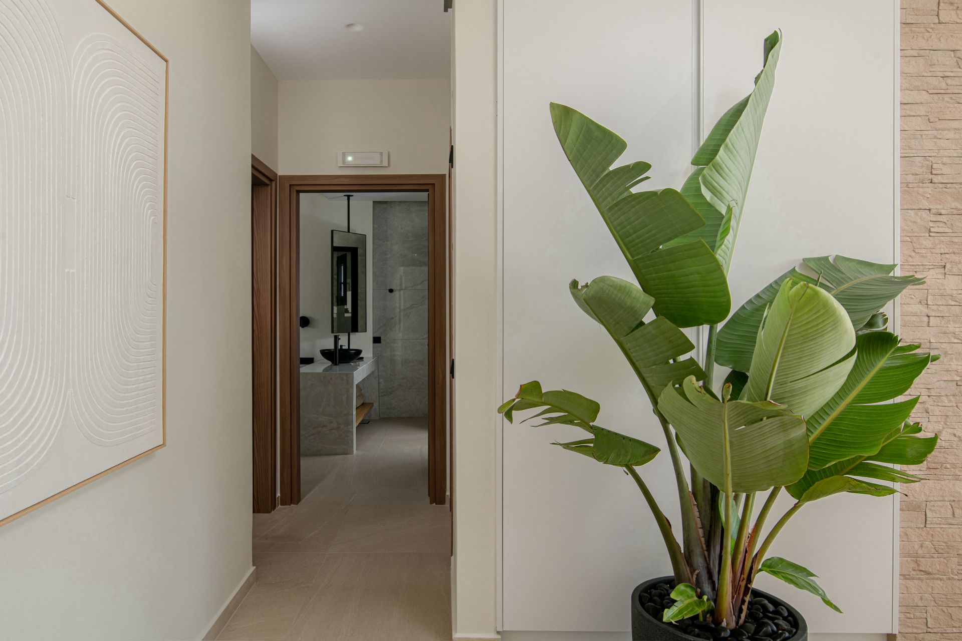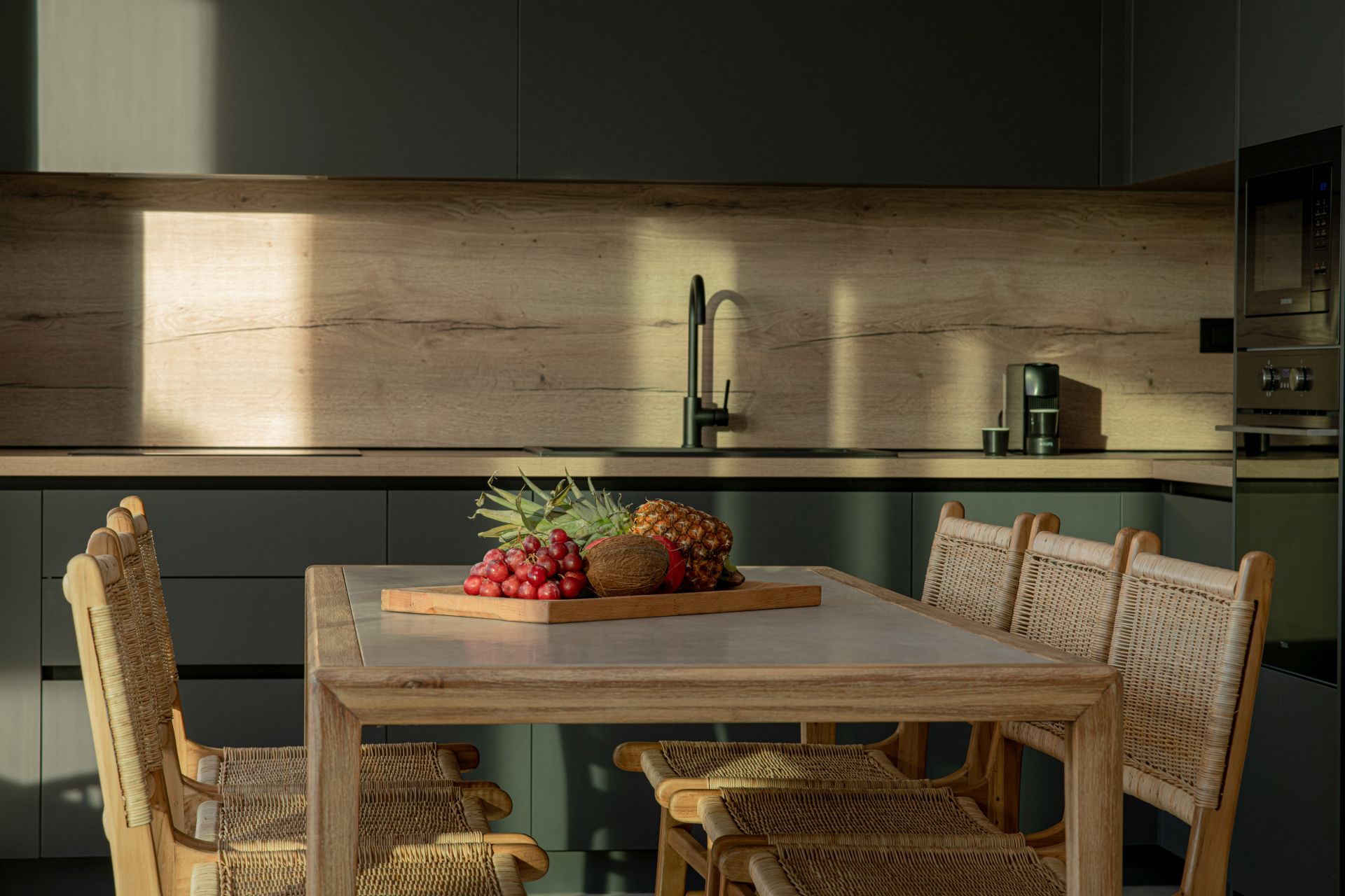 The villa has 3 bedrooms, a flat-screen TV with streaming services, a fully equipped kitchen with a dishwasher and an oven, a washing machine, and 3 bathrooms with a walk-in shower. A private entrance leads guests into the villa, where they can enjoy some wine or champagne and fruits. There is also a seating area and a fireplace.